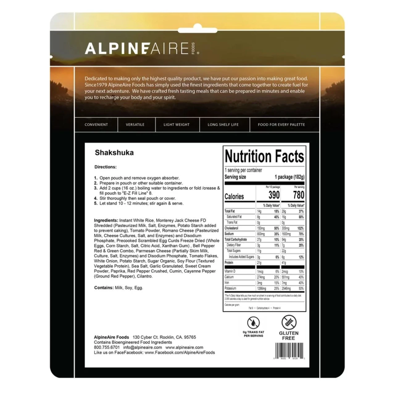 AlpineAire Foods Shakshuka – A warmly spiced saucy stew of tomatoes, onions, and peppers with eggs and paired with rice that’s perfect for any time of day.
