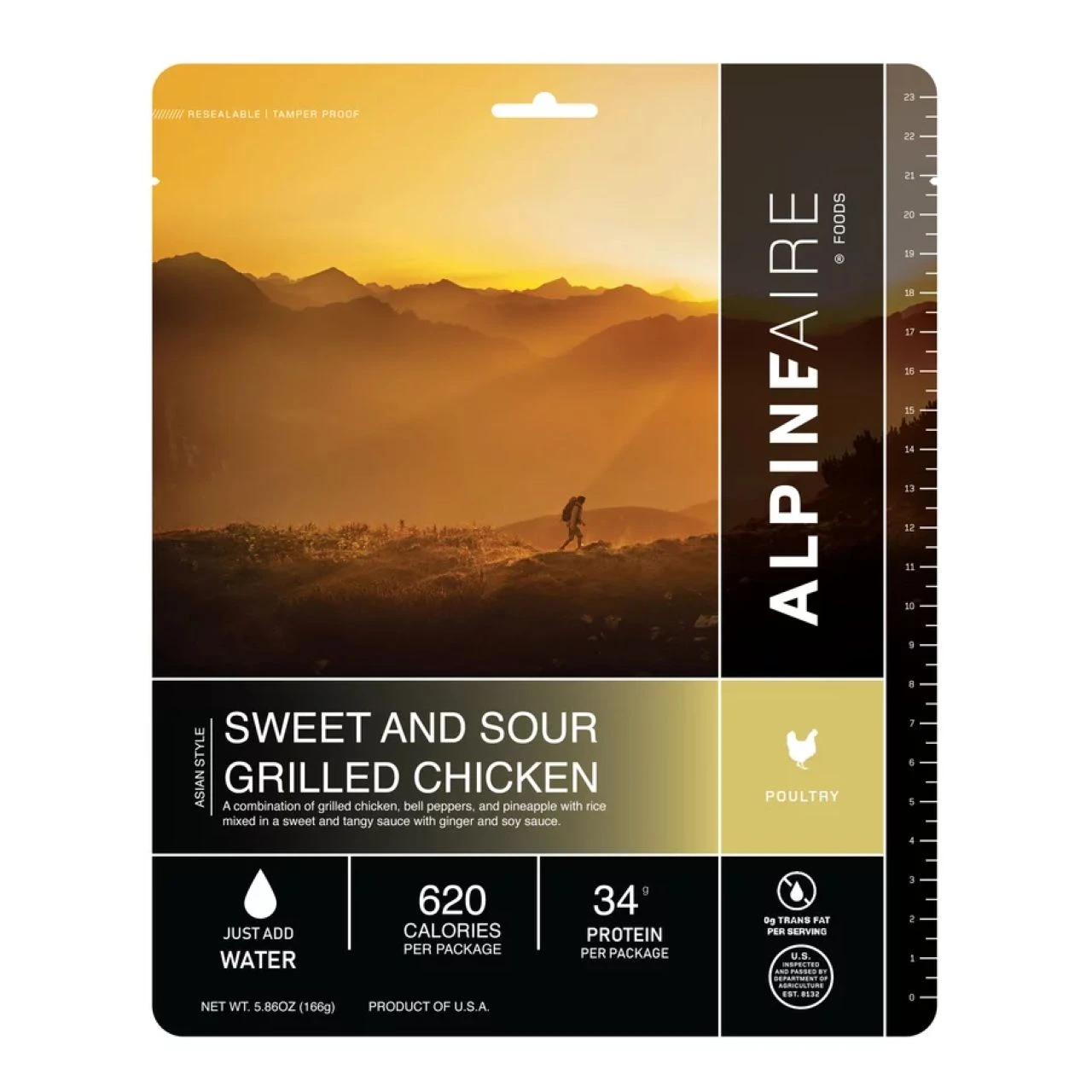 AlpineAire Foods Sweet & Sour Grilled Chicken: a combination of chicken, bell peppers, and pineapple with rice mixed in a sweet and tangy sauce with ginger and soy sauce.
