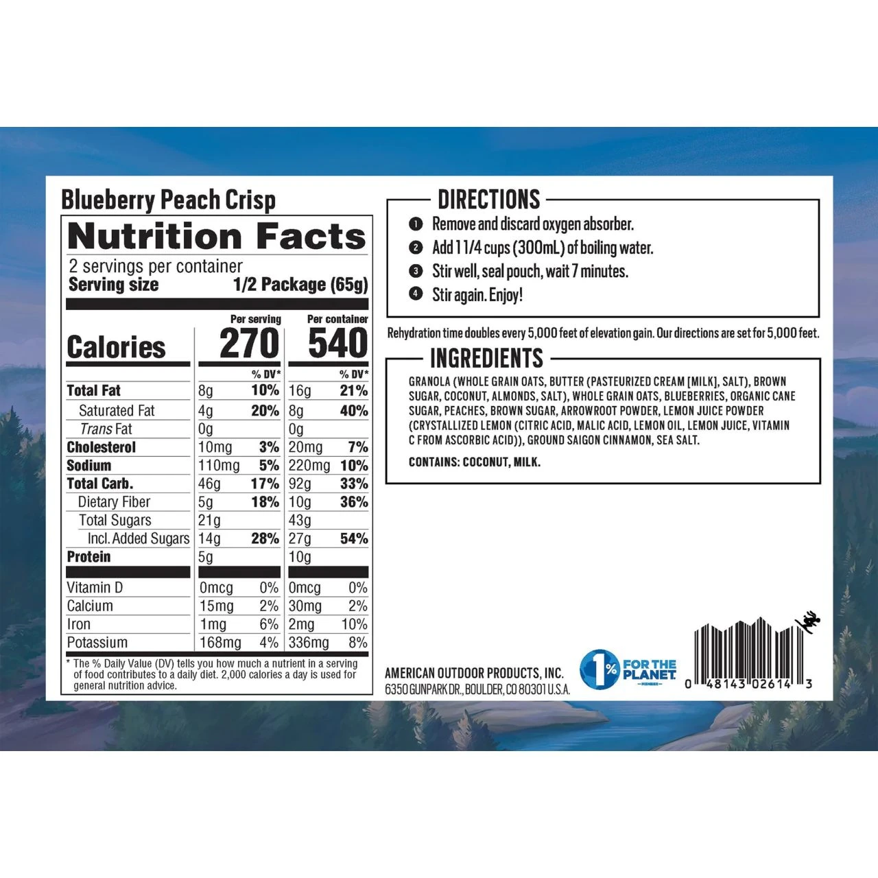 What does summer taste like? We think a warm fruity crisp is as close as it gets. Try this delicious crisp with sweet blueberries, tart peaches, and buttery baked oats. Each bite is warm and juicy with just the right about of cinnamon spice. With only 10 ingredients this dessert is simply the perfect culmination of every meal. Tastes like something mom would make on a summer night. Just add hot water to enjoy!