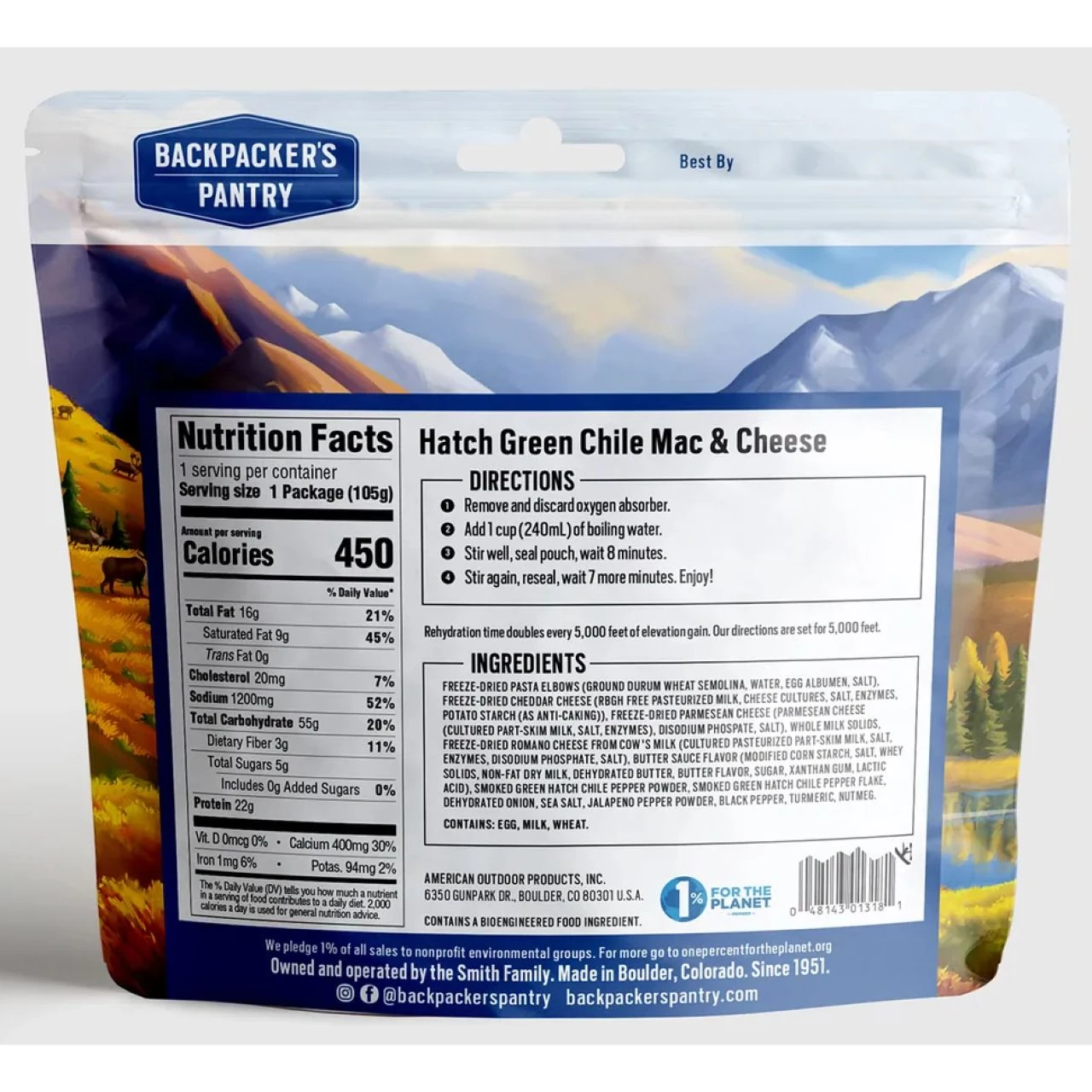 This recipe takes a southwestern spin on Backpacker’s Pantry’s creamy classic 3 Cheese Mac and Cheese. With pepper jack cheese, and zesty Hatch green chile pepper added to Belgian egg pasta and a rich blend of Parmesan and Romano cheeses, this has quickly become a pantry staple.