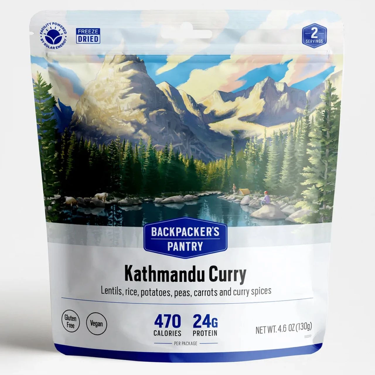 You can bring the flavor of the Himalayas with you on every trek you take with Backpacker’s Pantry Kathmandu Curry. Based on the regional specialty Dahl Baht, Kathmandu Curry warms the soul with delicious authentic spices & is chock full of freeze-dried vegetables. Dahl Baht is the nutrition source of the world’s greatest mountaineers and high altitude climbers, being that it contains just the right amount of easily digestible protein, carbs, and calories. This Nepalese vegetarian delight is gluten-free, vegan and dairy-free. High in protein with 24 grams per pouch, our Kathmandu Curry is a hearty camping meal. Lentils & brown rice make this curry extra nutritious and highest quality turmeric is used for brain and joint health. The freeze-dried colorful vegetables include potatoes, peas and carrots. Bring along some naan and you are all set for an Indian feast on the trail, boat, dorm room or airplane. Being so low in fat yet high in protein and high fiber this is an optimal meal for emergency preparedness. Convenient and quick and easy to prepare, Kathmandu Curry only needs 2 cups of boiling water and 15 minutes of hydration time. Enjoy this best-selling non-GMO, gluten-free, vegan meal.