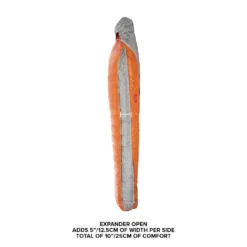 • Ultralight down mummy bags that feature expandable panels for customizable fit – patent pending