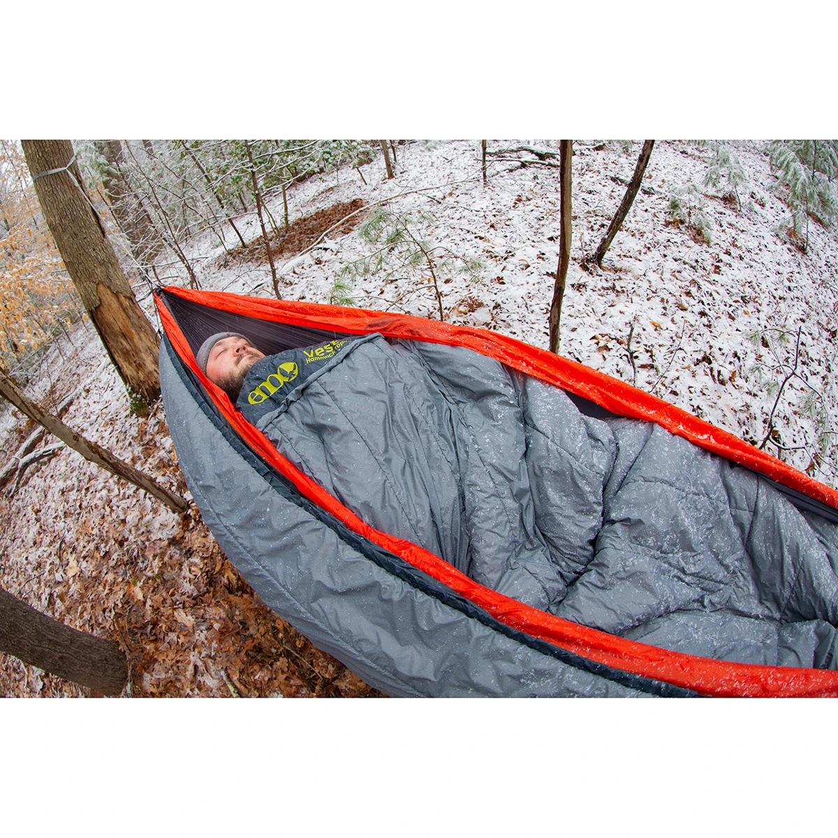 Protecting you from a range of inclement weather conditions, the updated ENO Vesta TopQuilt is built with two unique layers of high-performance Primaloft® insulation to shield you with superior warmth during your hammock adventures.