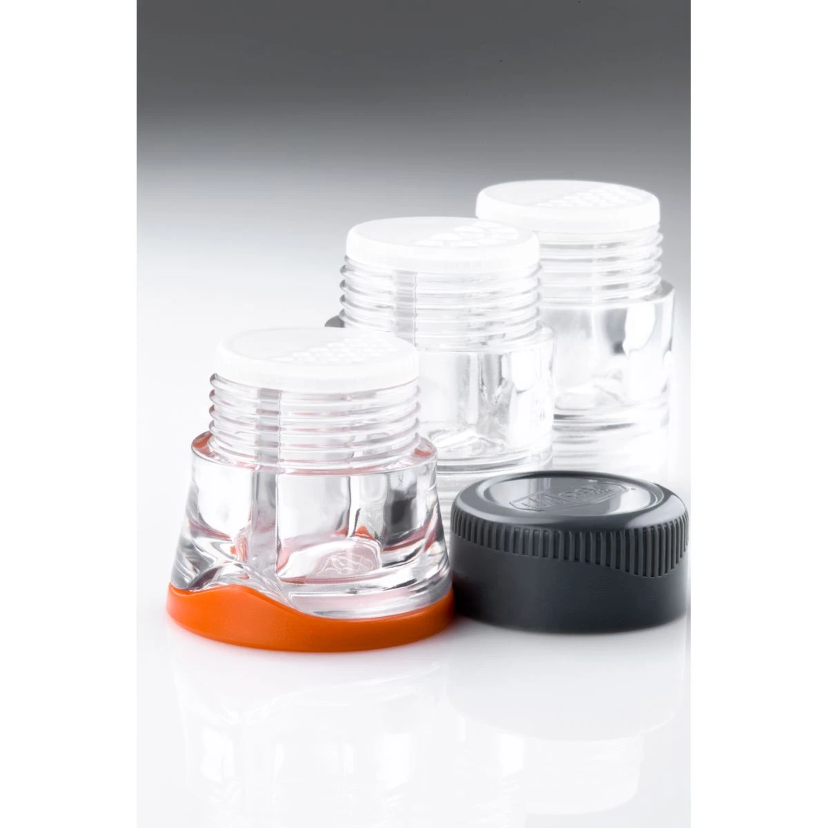 Clever modular design is infinitely expandable to carry any number of spices Clear copolyester resin body is lightweight, clear and resilient