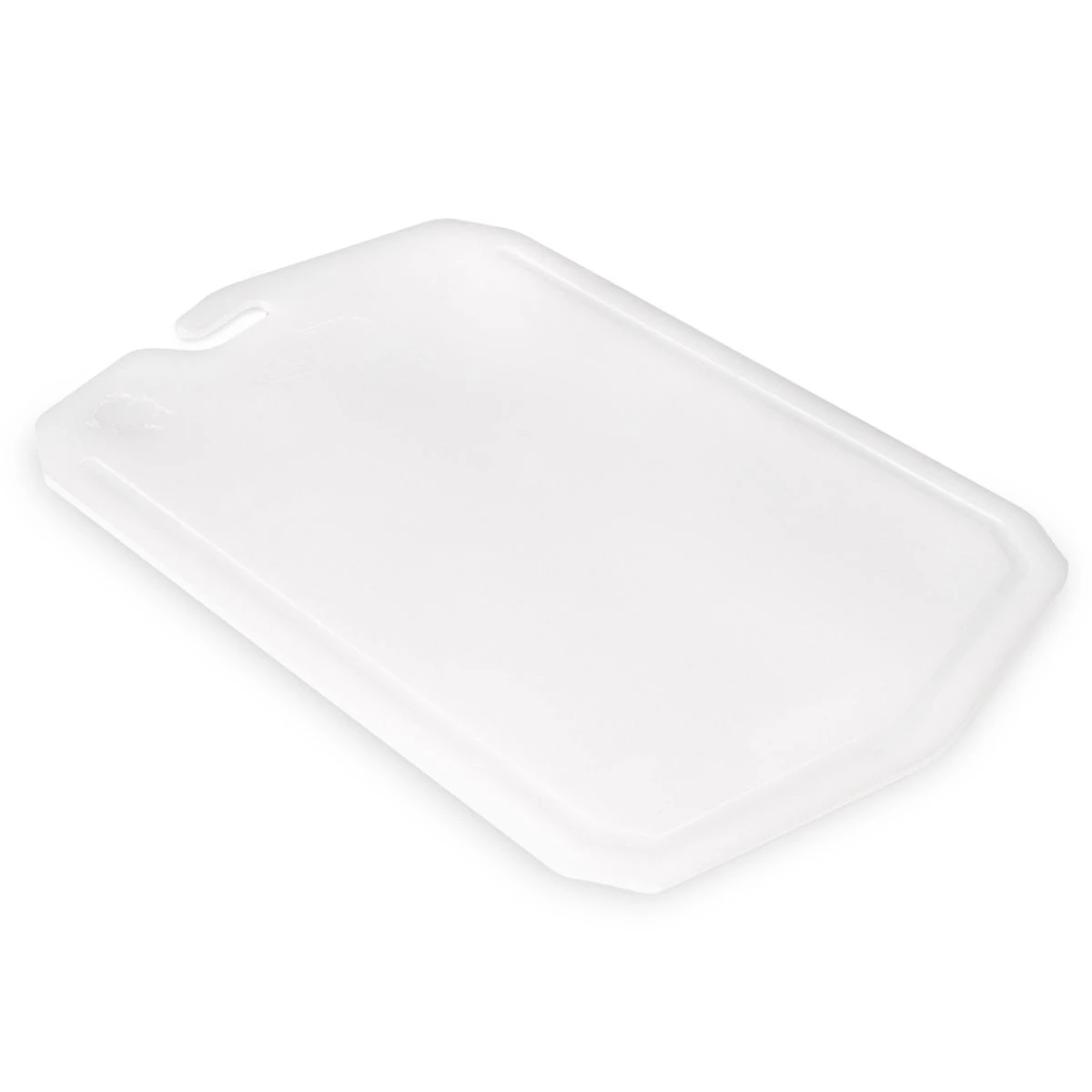 The Ultralight Cutting Board is perfect for chopping and dicing in the backcountry. It features two sides, one with a veggie icon, the other with a meat icon, as well as a gutter to help contain juices.