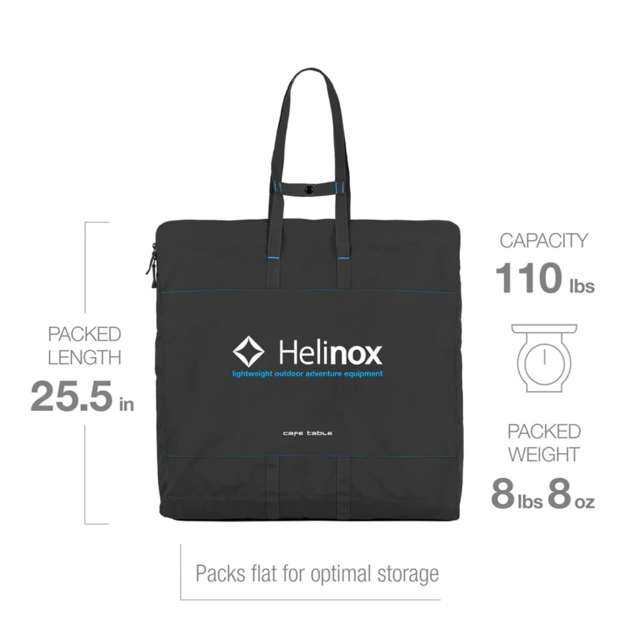 Just the right height for civilized campsite dining – or picnics, trailside lunches, van-life board game breaks, outdoor work, and more – this taller table is secure, easy to clean, and made to pair perfectly with the Helinox Cafe Chair (sold separately).