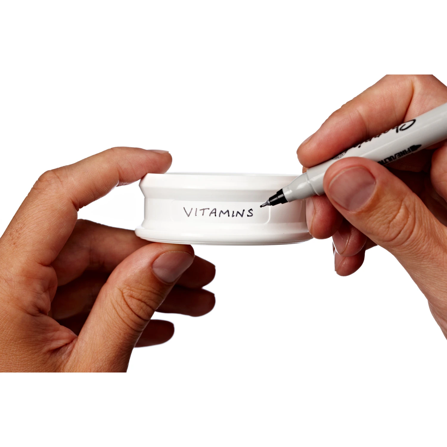 GoTubbs work great with pills, knick-knacks, snacks, vitamins, change, bits-n-pieces, you name it. A recessed, textured labeling area resists being rubbed off, and the transparent tops let you see what’s inside without opening them.
