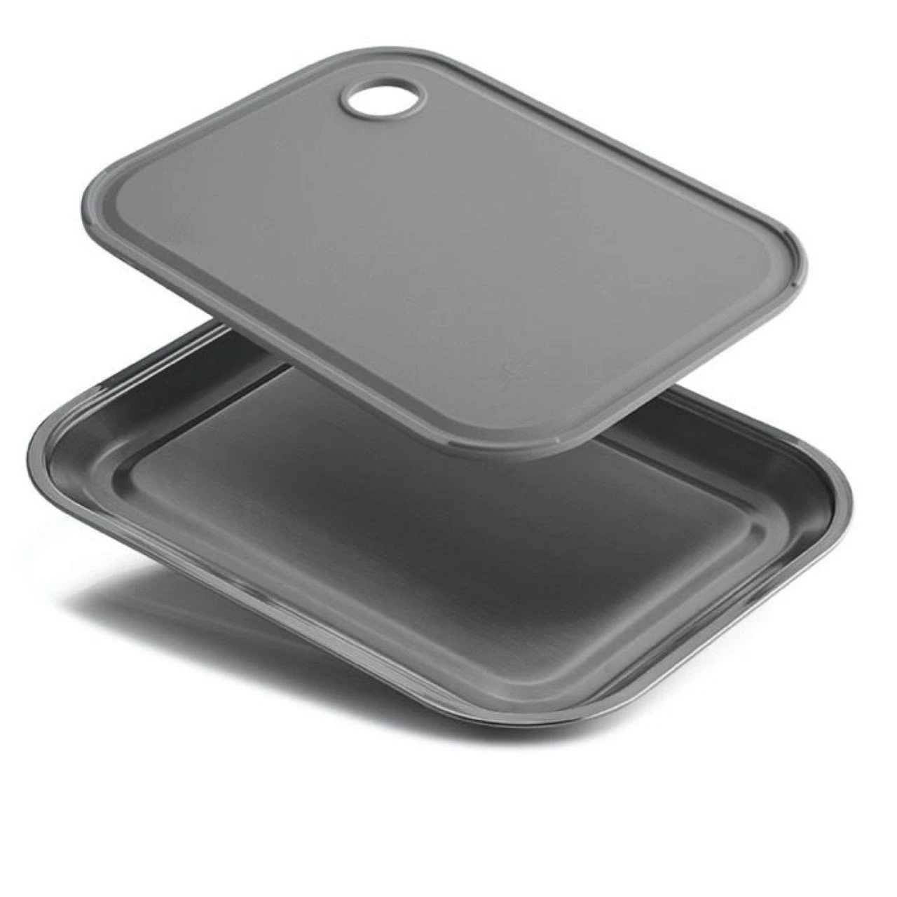- Thumb hole to easily lift cutting board when nested inside the platter