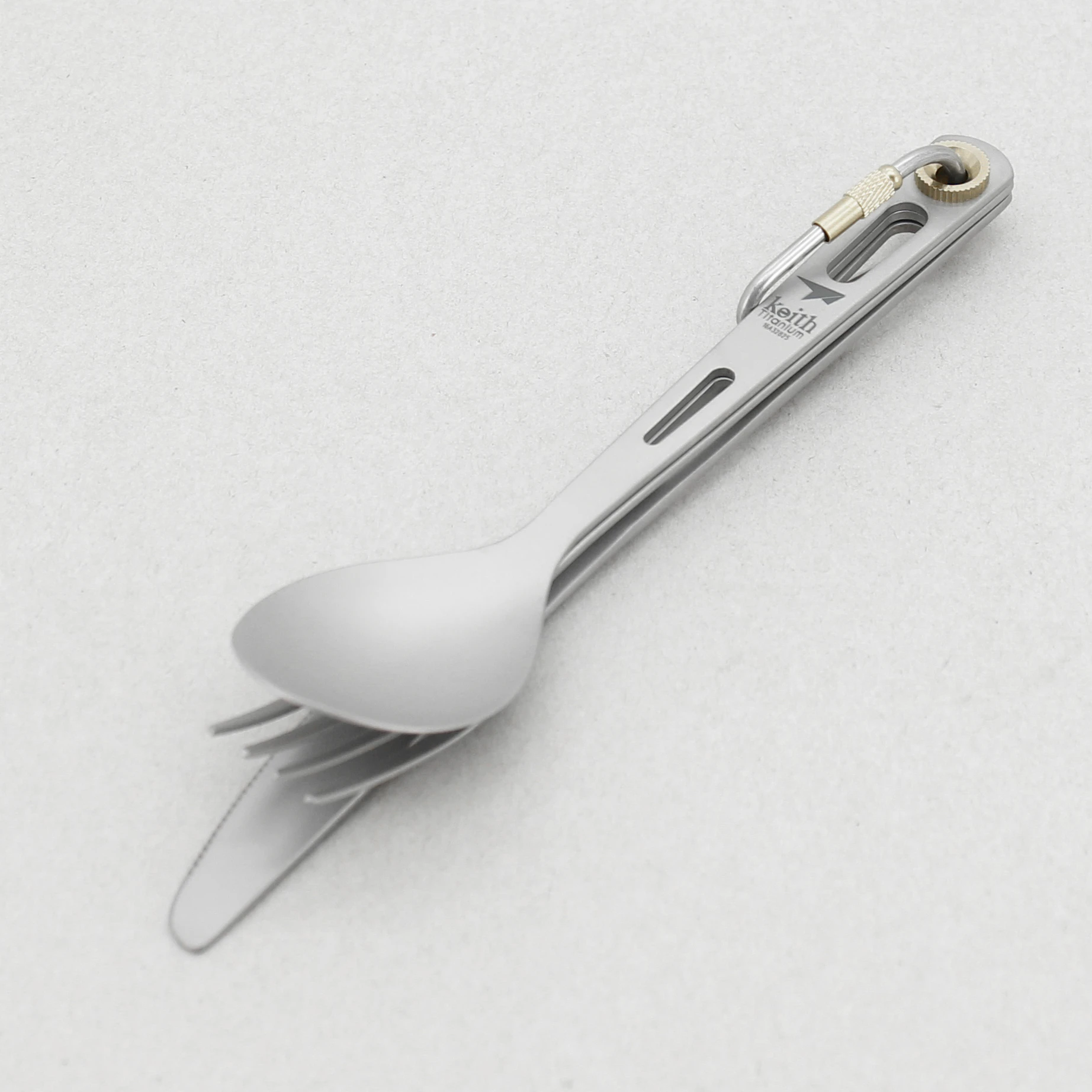 The 3-Piece Titanium Cutlery Set from Keith features a lightweight spoon, fork, and knife for any minimalist backpacker who cooks or eats