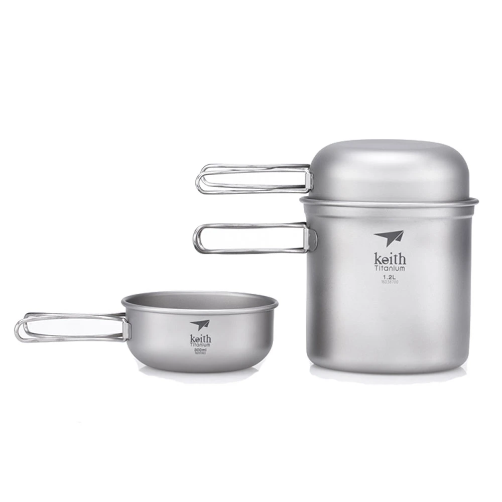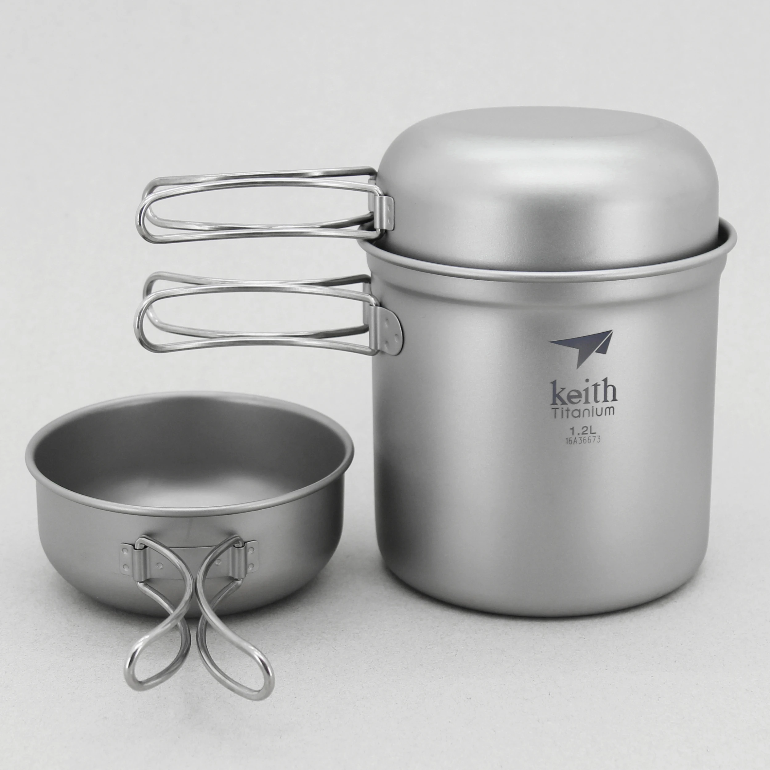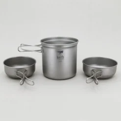 The 3-Piece Titanium Pot and Bowl Set from Keith is a pure titanium nested camp kitchen set that’s ultralight.