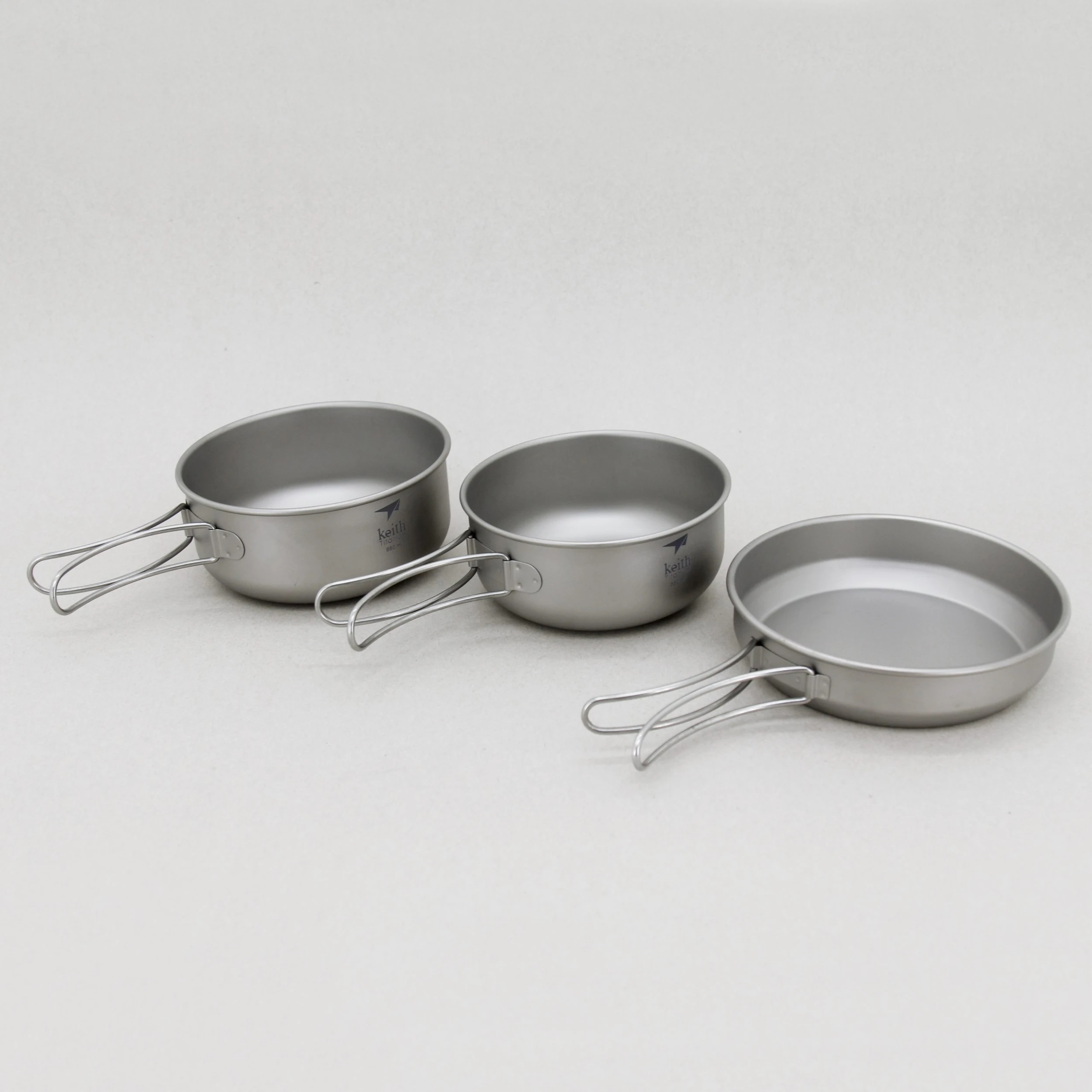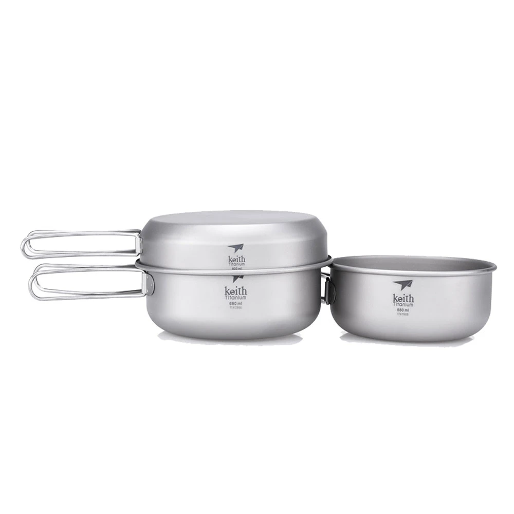 The 3-Piece Titanium Pot and Pan Set from Keith is a pure titanium nested camp kitchen set that’s ultralight.