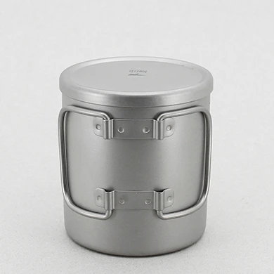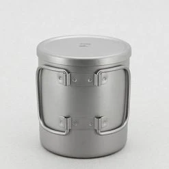 The Double-Wall Titanium Mug with Folding Handle and Lid from Keith is a vacuum insulated titanium mug with a sandblasted surface and foldable handle.