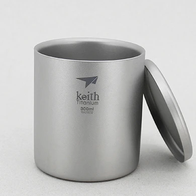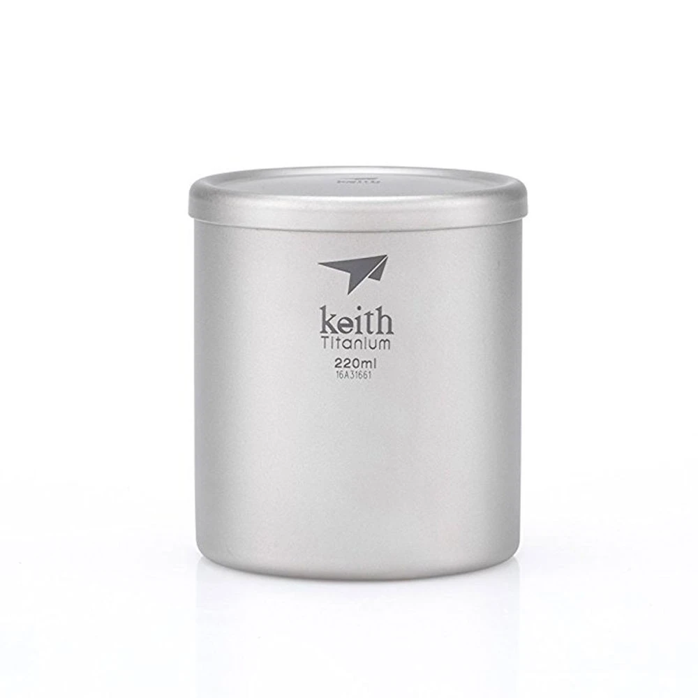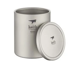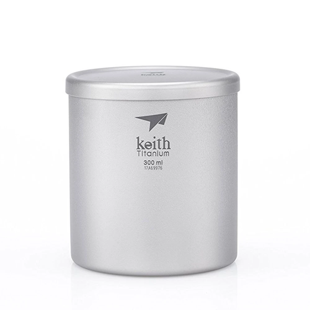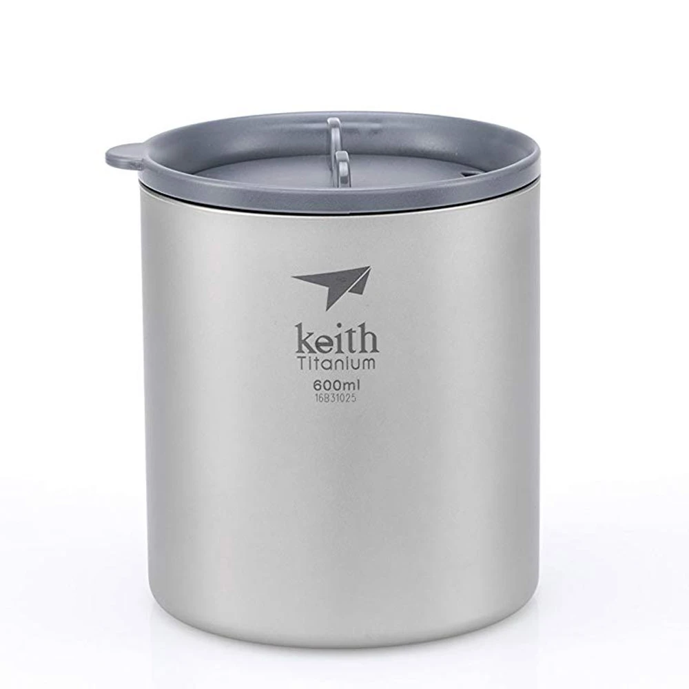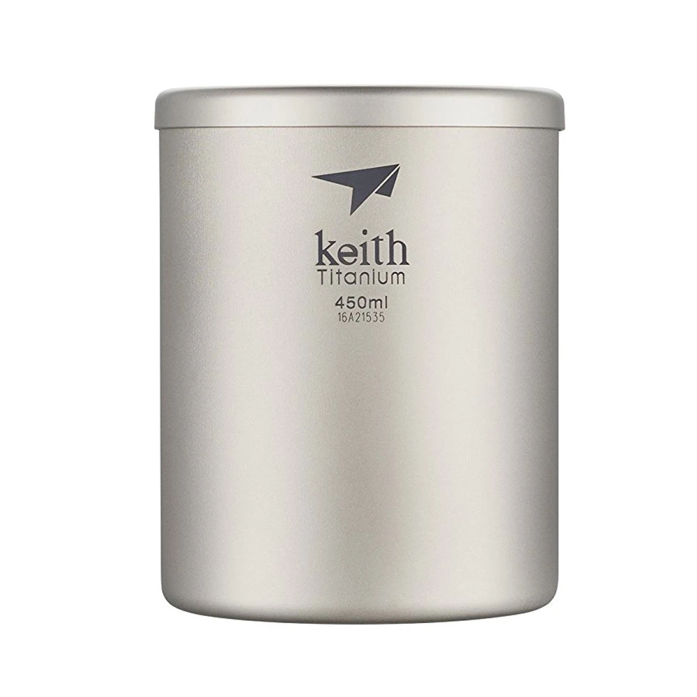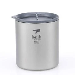The Double-Wall Titanium Mug with Lid from Keith is a vacuum insulated mug for cold or warm liquids with a smooth sandblasted surface.