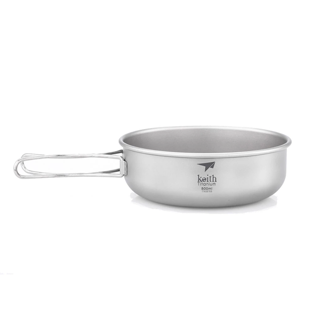 The Titanium Bowl with Folding Handle from Keith is a lightweight bowl for camp cooking and eating for ounce counters and minimalists.