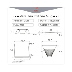 • The edge of the mug leans outward which is as same as the traditional Chinese tea cup, making the water flow more smoothly. Along with Keith’s premium pure titanium, this mug brings the lip touch feeling and drinking feeling to a new height.