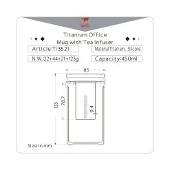 Keith Titanium’s 15.2 fl oz double-wall Office mug and tea infuser are made of premium pure titanium grade 1 without lining or coatings to let you enjoy your favorite tea at its truest! The Office Mug with Tea Infuser has two lids, one made of pure titanium and one made of food grade silicone. Titanium is ultralight and super-strong; it is eco-friendly, biocompatible and bacteria inhibitive; it is also extraordinarily hypoallergenic and exceptionally corrosion-resistant.