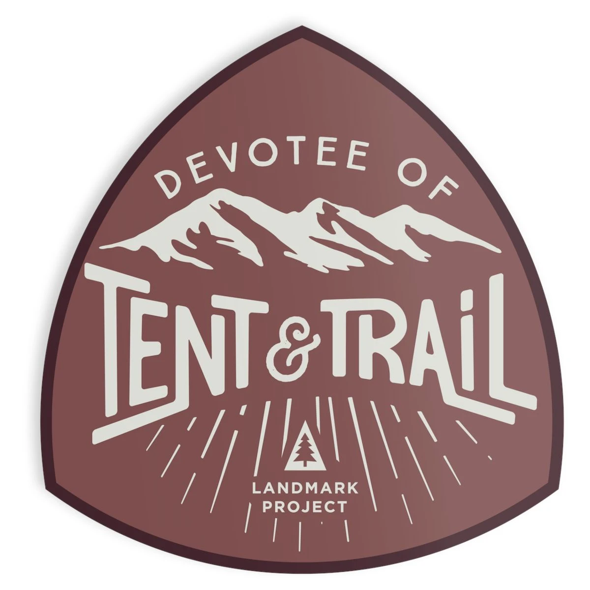 A weatherproof sticker of Landmark Project’s Devotee of Tent & Trail design. This little beauty is good for bumpers, windows, coolers, water bottles, whatever you choose.