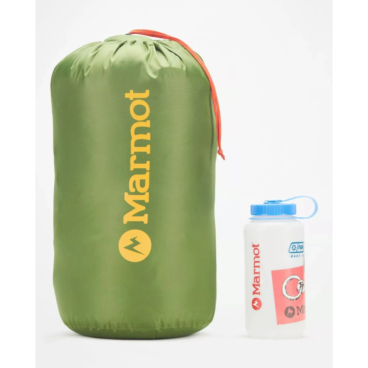 Dropping temps? No worries. The Marmot Wind River -10F sleeping bag is stuffed with 650-fill-power down to keep you nice and toasty. Features like a down-filled draft collar plus a multi-baffled hood team up to prevent heat loss, and dual-side zips let you regulate the temp while making it easy to climb in and out of the bag. Looking for more room? Open the footbox for space to stretch or zip it up for extra warmth. Unzip the extended zipper flaps on extra-cold nights for blanket-like coverage.