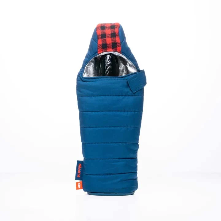 Once upon a time around a campfire in Oregon, a sad man was holding a warm beer when his friend handed him a scrap of old sleeping bag to wrap around his bottle. And he thought, “Wouldn’t it be neat if my beer bottle had its own sleeping bag?!” The OG Puffin was born and lovers of cold drinks everywhere rejoiced.