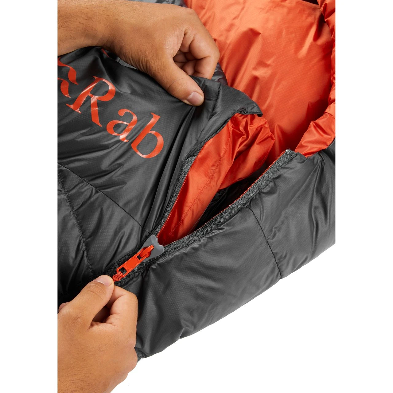 The Ascent is built with a lightweight and durable, recycled Pertex® Quantum outer fabric and recycled nylon lining. It has trapezoid shaped, boxwall baffles that stack neatly together, encouraging the hydrophobic duck down inside to loft fully and reducing the appearance of cold spots. Hand-filled in the UK, all of Rab’s down bags benefit from never having had their down compressed before use, maintaining the down’s loft and warmth.