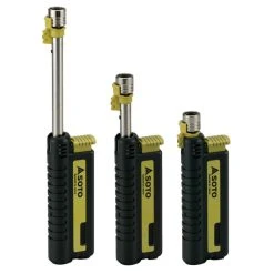 Compact wind-resistant burner with extended burner head. Refill torch with isobutane/propane cartridges using the SOTO Fill Adapter (sold separately) or butane gas lighter cartridge. The flame reaches temperatures up to 1300℃ (approx, 2300°F). Gas not included.