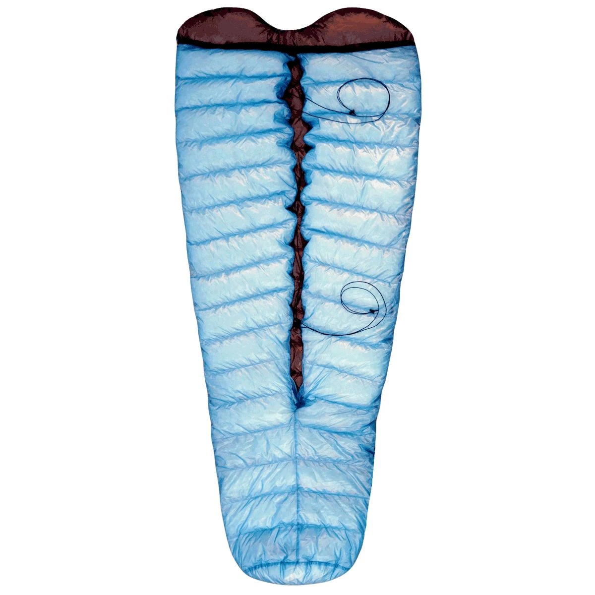 The NanoLite is designed with a set of adjustable and removable pad straps that are compatible with any backpacking sleeping pad. When no gram can go unaccounted for, the straps can also be removed. Other features include a sewn-through footbox and an insulated draft yoke with elastic closure for maximum heat retention.